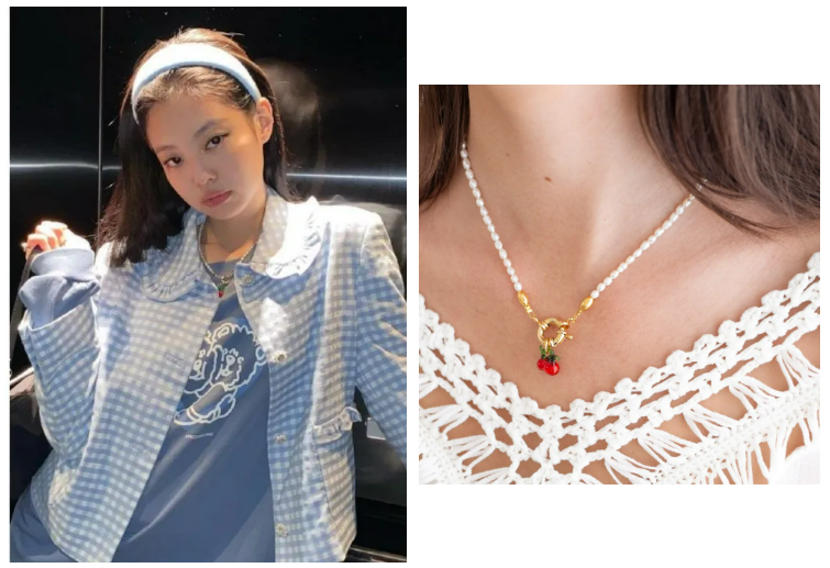 此外,今年还超流行把米粒珍珠和彩色串珠或天然宝石结合。Jennie之前戴过一条,来自法国小众品牌Et Toi Paris,售价280元。