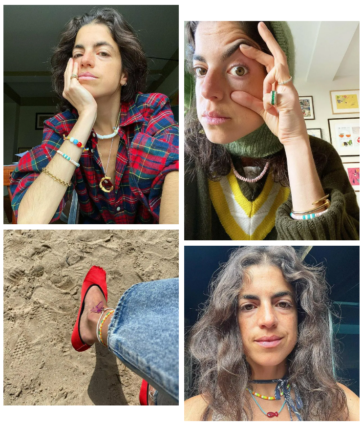 前两天翻了反男人博主Leandra Medine的IG,发现她好爱戴串珠元素的首饰哦~