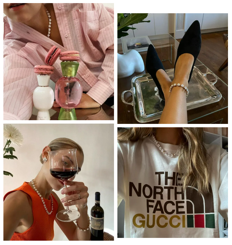 另一个我们爱的博主Jenny Walton,她也是一个配饰狂魔且有明显的个人喜好。这个小雏菊系列来自她的个人品牌,已经佩戴不下20次啦!