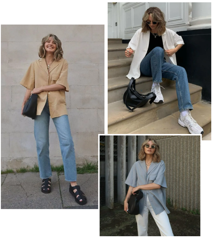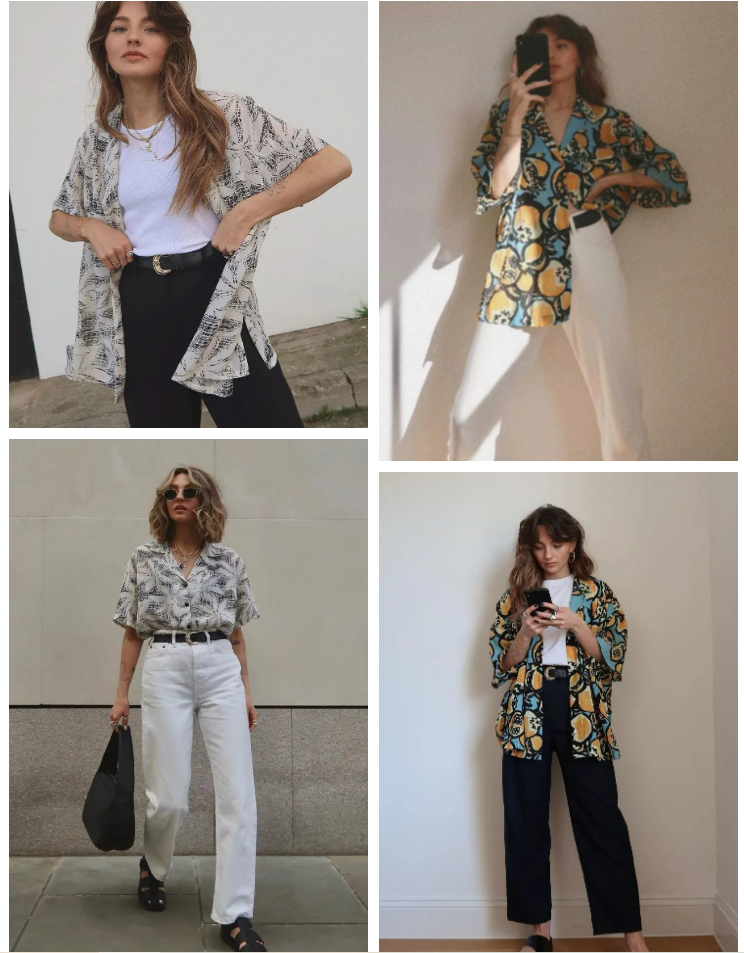 上面这个西装造型的短袖衬衫来自ASOS,她一口气入了3色,但并不会让人觉得无趣或重复: