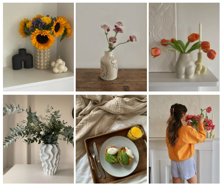 她很喜欢分享生活中的美好。我喜欢看她的ins,尤其喜欢看她摆弄那些漂亮的花瓶,搭配精美的插花。给人感觉是个热爱生活、又朝气蓬勃的女孩。