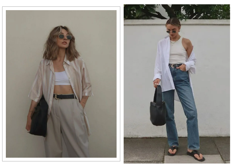 左:衬衫ACNE / 内搭Tint Swimwear / 墨镜Ray-Ban