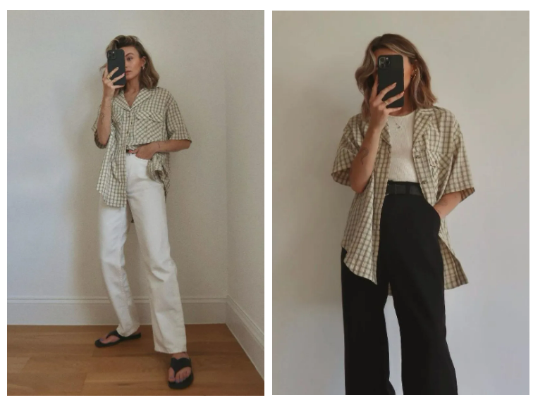 这也不是她第一次做这种事了,更早之前她还有款更基础的短袖衬衫,也入了一黑一白。敞开、扣上、搭西装裤、牛仔裤,她永远在试图增加单品的重复利用率。