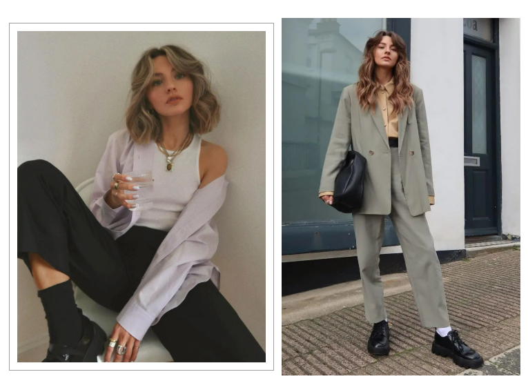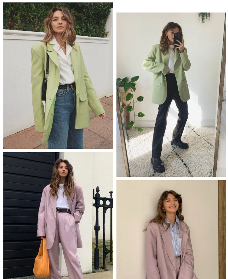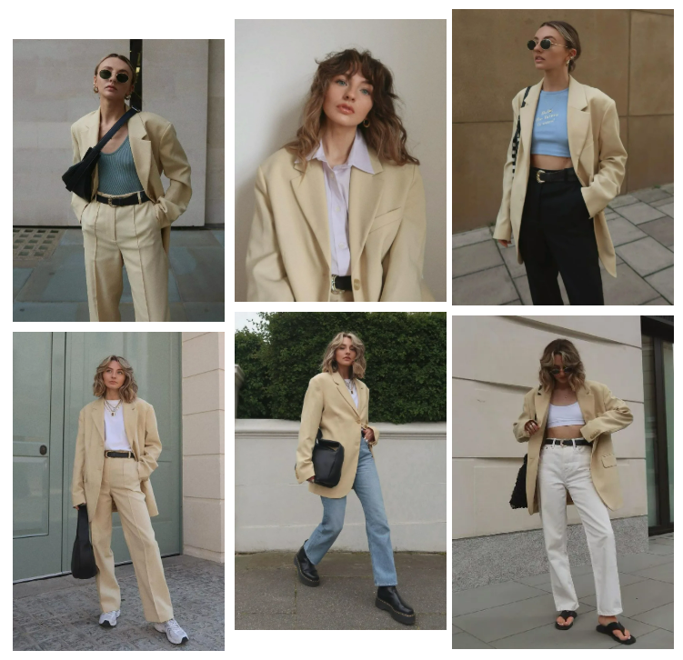 成套穿、单穿外套、单穿裤子…都是新鲜感。来看看Chloe,这件淡黄色宽肩套装,被她穿了N回,没有一套是重复的。