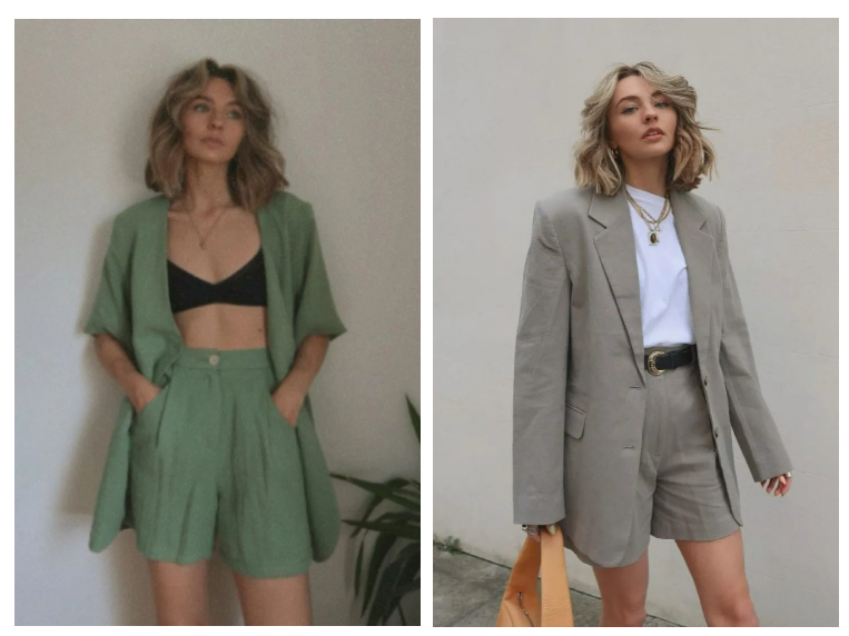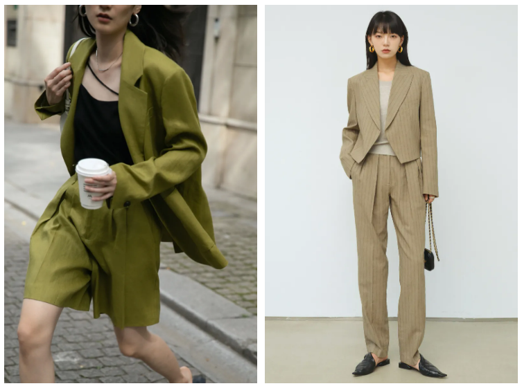 在外套中,西装是率先可以拿出来派用场的早秋单品。从面料轻薄的短袖短裤,过度到单层不闷热的长袖短裤,都好实用: