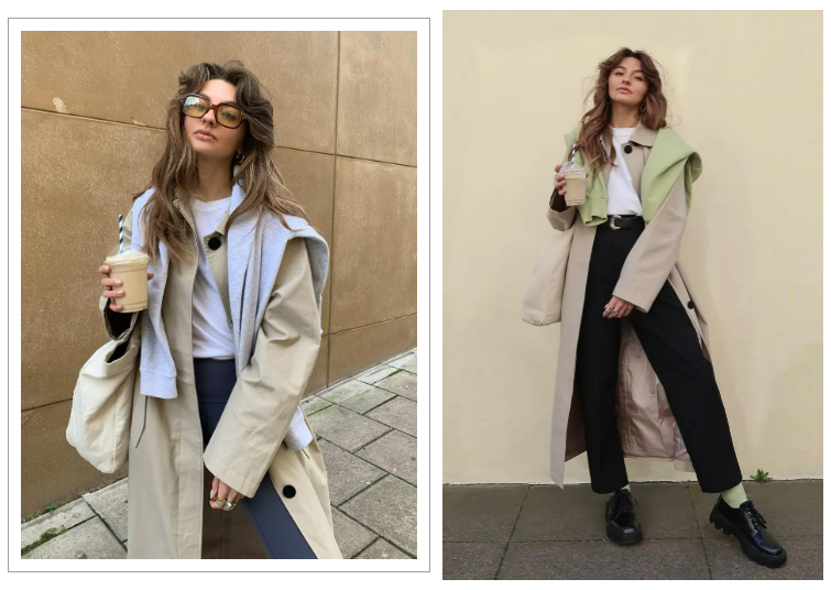 今年呢她买了另一件更简约的,你猜怎么着,这才9月份,她已经用这件风衣贡献了十几个不同look了。讲真,你自己家的风衣有被你翻牌过那么多次吗?