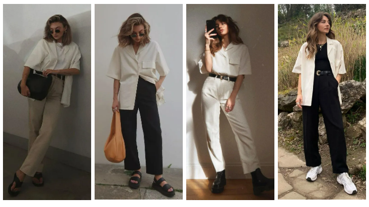 Chloe喜欢这些基本款的一个原因在于可以随意互相组合。同样的上衣,换条裤子、换双鞋、甚至换个扣合方式,就是一个全新的look。