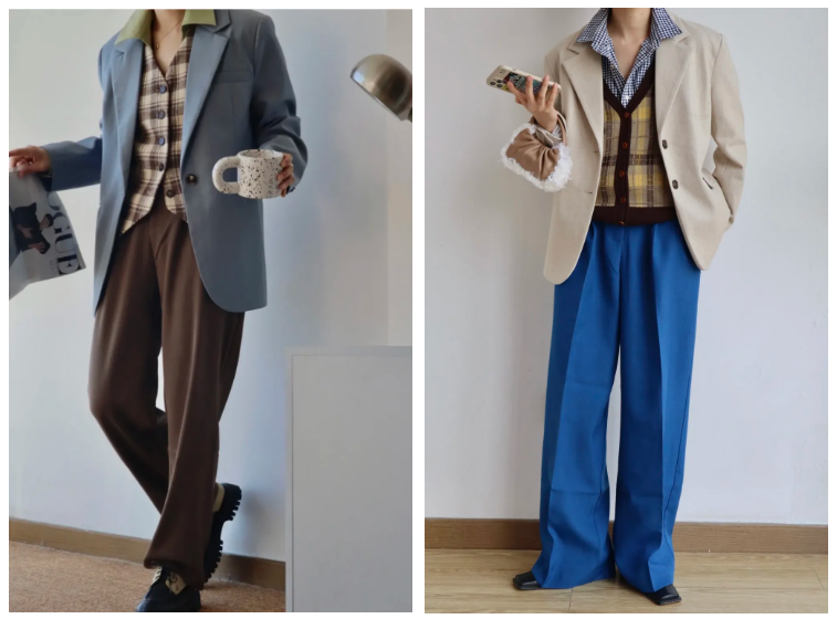 常用的搭配套路:衬衫+背心(马甲)+外套+裤子,还有最屡试不爽的配色:黄+绿+蓝。
