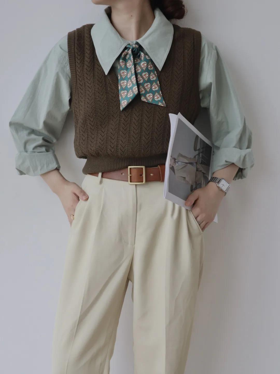 常用的搭配套路:保持整体风格平衡。例如穿一件偏甜美的上衣,会选择搭配简洁的下装去中和,让整体不会显得过分甜腻。又或者穿一身硬朗的中性西装,反而需要点缀一条柔美的丝巾,去打破全身的呆板。