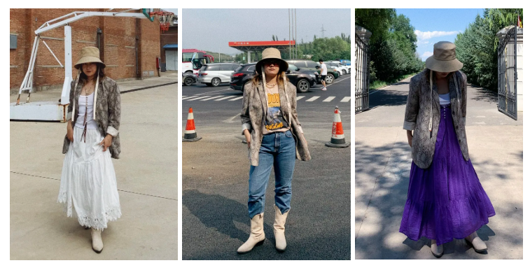 周围环境对穿衣有一定影响。在杂志社上班时,大家每天都很精致,也会要求自己穿的时髦再去上班。离开杂志社后,周围人不那么时髦精致,自己也开始懒得打扮。加上在杂志社上班,从不会担心这么搭配太over了吧…也许也因为那会年轻。现在年纪大了,顾虑多了,胆子就小了。