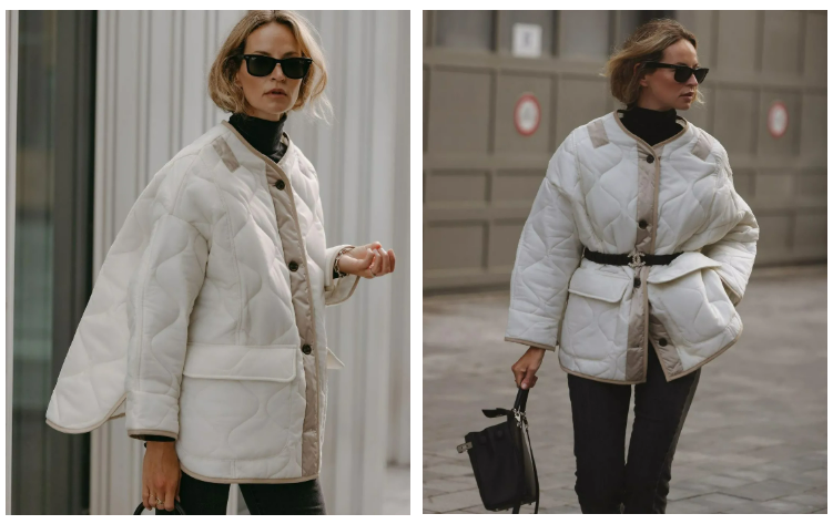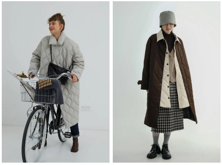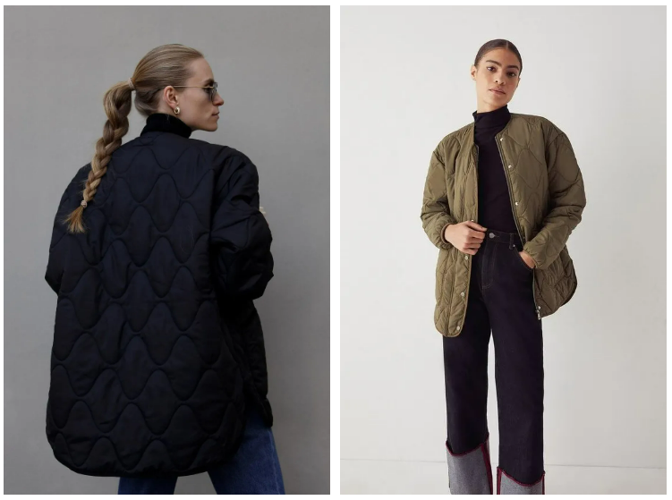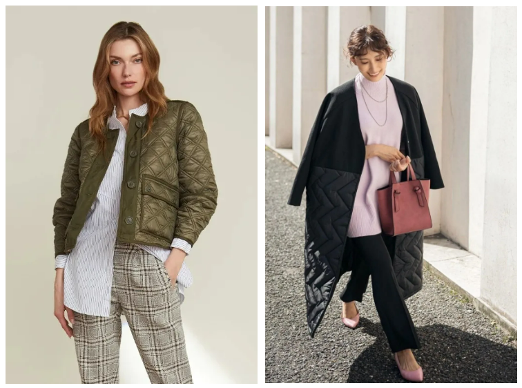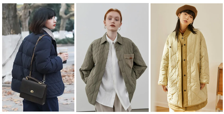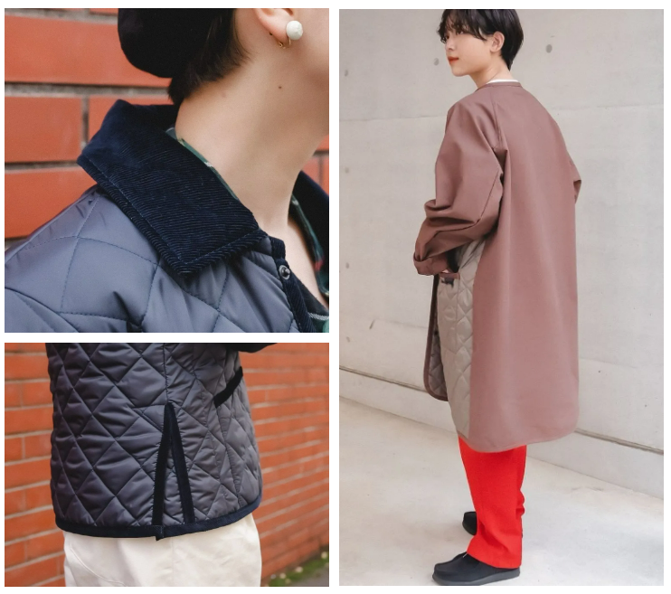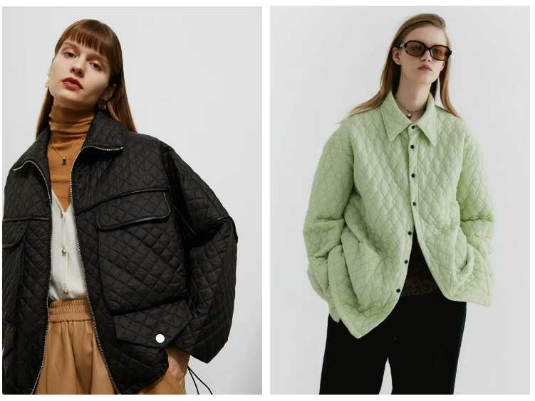 如果实在怕穿不出感觉,也可以选择拼接款,把绗棉安置在局部,“内胆感”就不会太强~