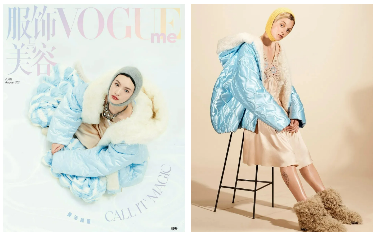 BTW,邱天还穿过Miu Miu这件上过《Vogue》,像朵蓝色的棉花糖~~