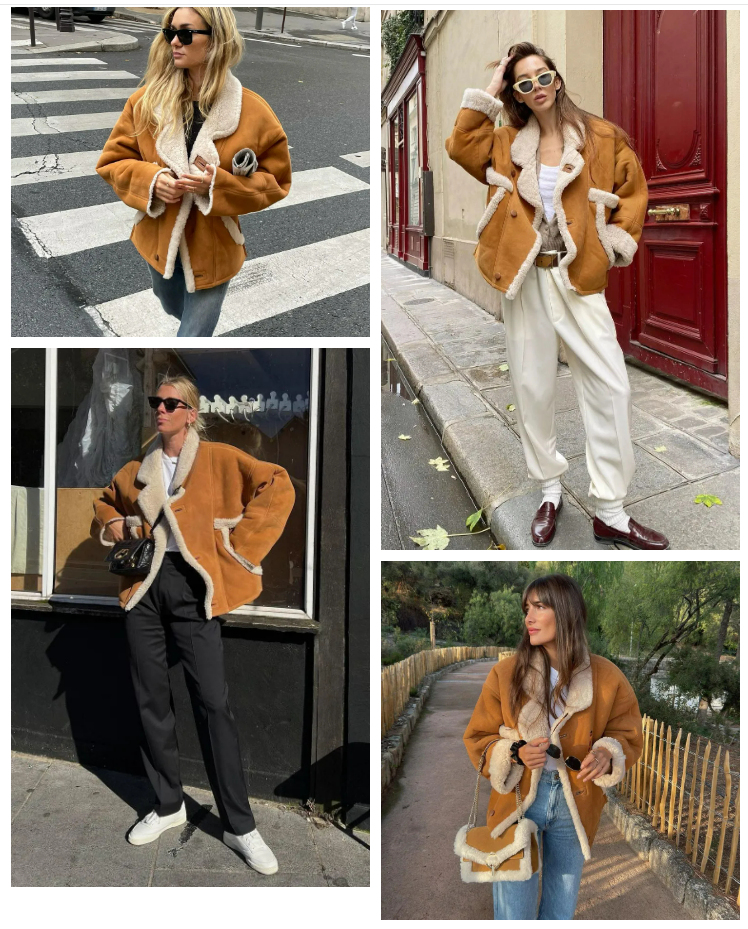 值得一提的是,像这样毛毛在内侧的皮毛一体今年见到不少。尤其是Sandro这件,好多博主连环撞衫。