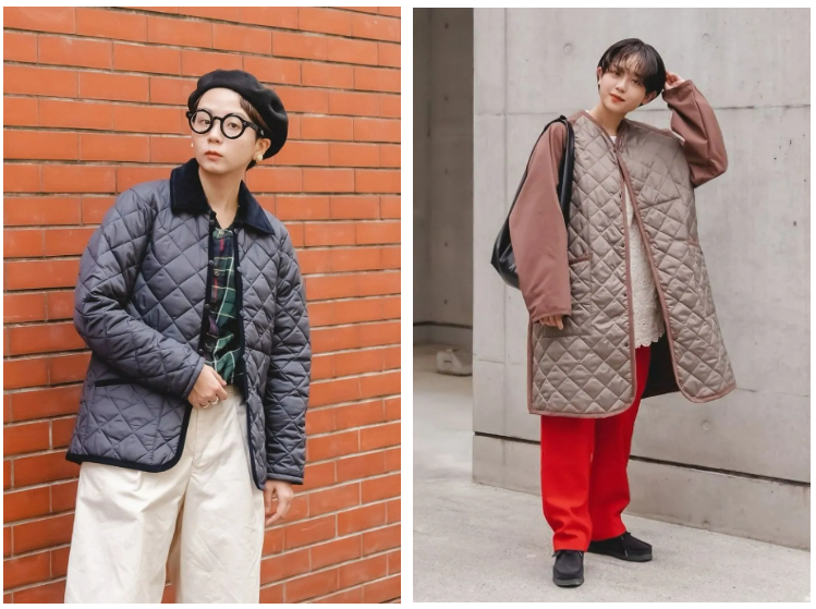 日杂上还很喜欢用绗棉外套打造学院感。什么黑鞋白袜、工装百褶裙…不过这些太挑人,需要对穿搭有十足把握的女生去驾驭,普通人看看就好~