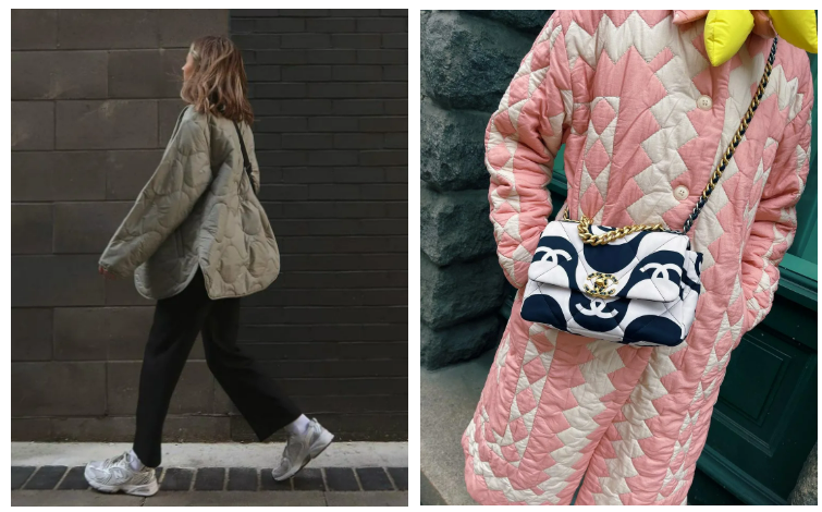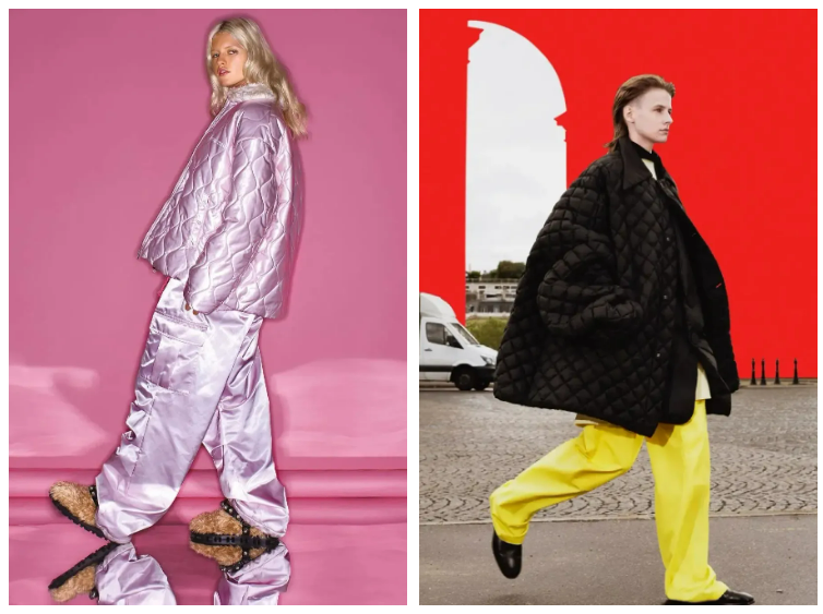 但时尚圈的更迭总是快速的,绗棉元素在火了一阵后逐渐消沉。直到这两年云朵包、羽绒填充包、胖胖鞋的回归,让这件衣服也重新回到大众视野。