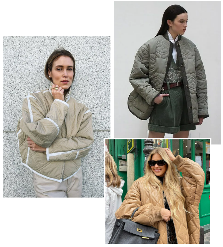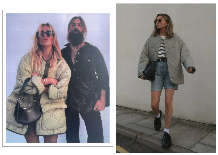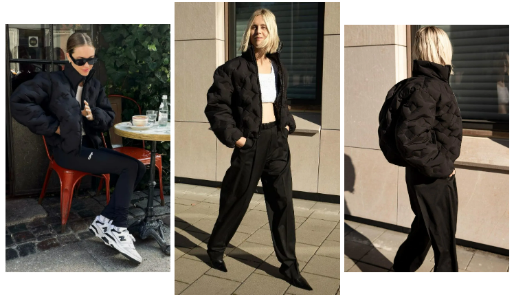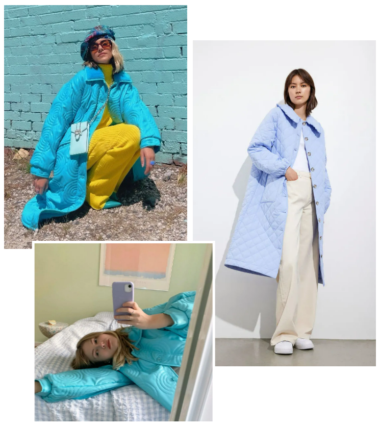 以the Frankie Shop这款现象级的大网红为例,我们可以看出今年的绗棉外套若想出圈,怎么都少不了在廓形上下点功夫,太基础的合身款显然不行。