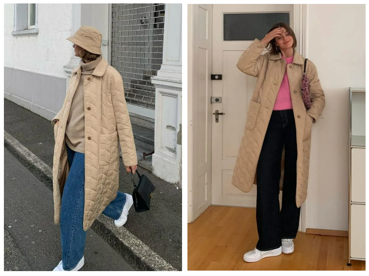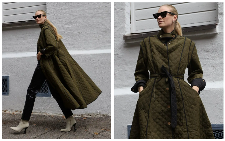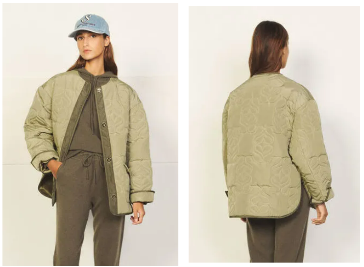 在这些长款里,Sandro的版型最低调,没有特别宽大,普通人都好穿。他们的特点是用logo来做绗棉压线,瑞士博主Maryljean最近晒了两套look。