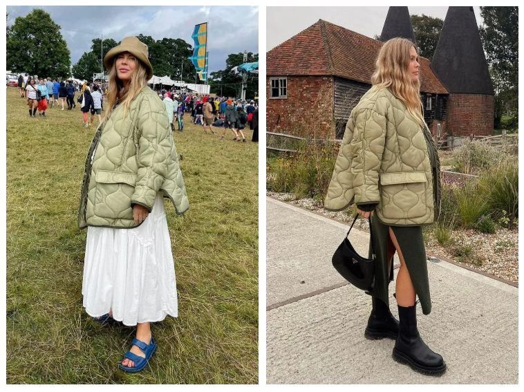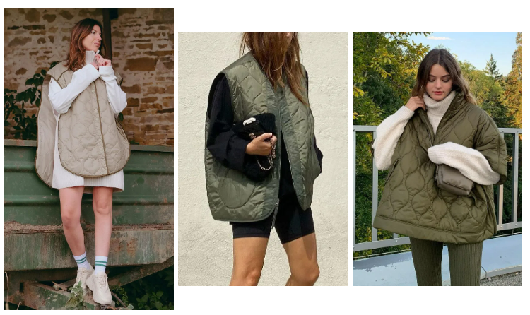 今年的绗棉马甲也很有意思。前阵子凯特王妃穿了件军绿色马甲,讲真,看着还真有点像内胆收个腰~~