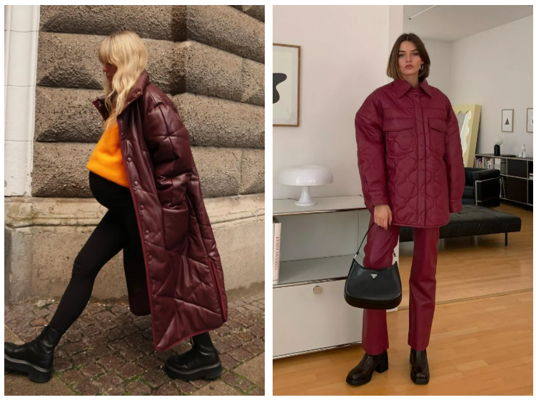 还有些品牌则是对材质和颜色下了手。普通绗棉外套像内胆,那换成皮质的,就变都市单品了吧?