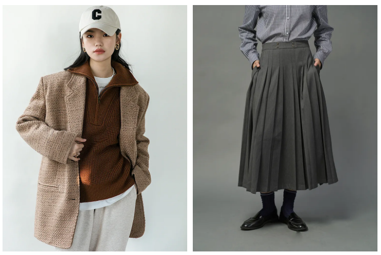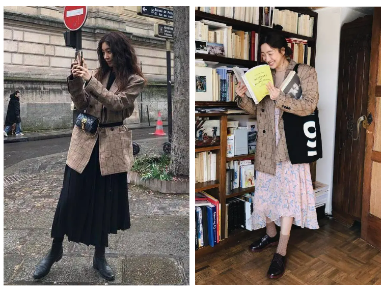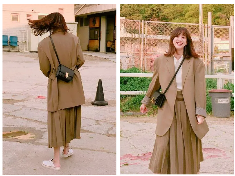 或是这样同材质的百褶裙,打造套装感,也有浓浓的文艺氛围。