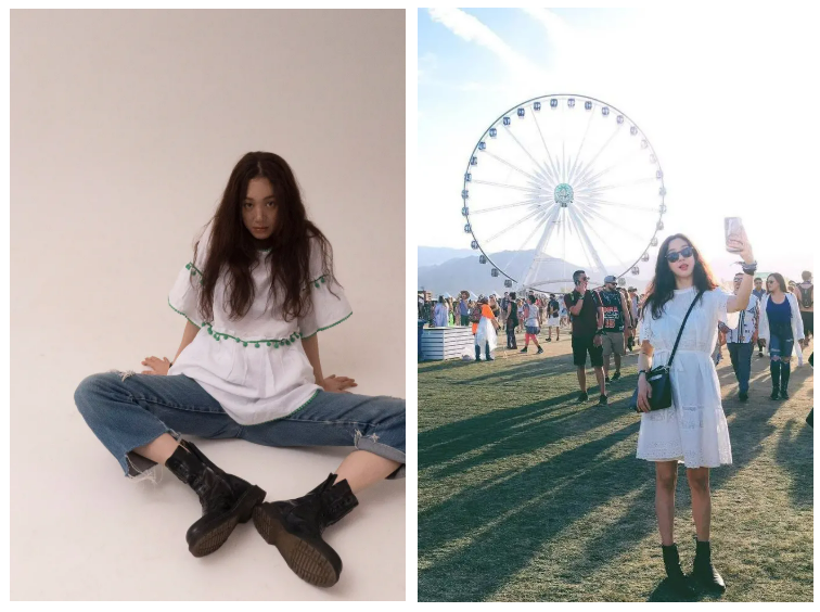 不光碎花,嬉皮士们常穿的那些民族风的刺绣、镂空…也都很适合她。再搭个旧旧的靴子就是夏日郑丽媛style了。