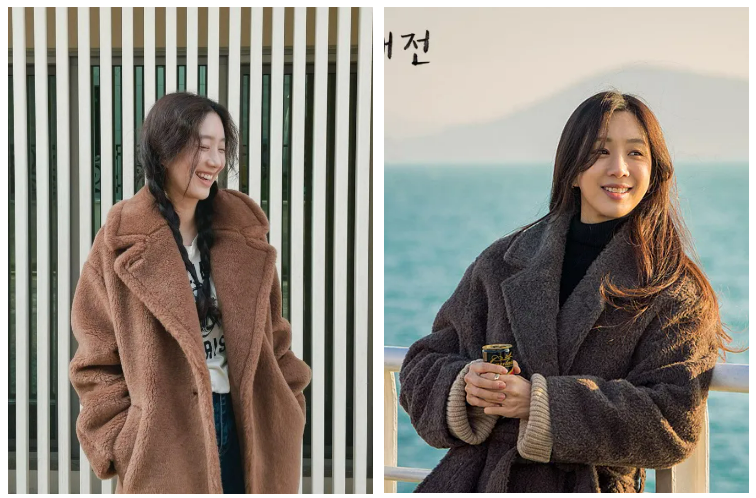 郑丽媛常穿的大衣也是廓形款。她最近的晒图中就穿了Max Mara的泰迪熊,类似款她在《检察官内传》中也有穿过: