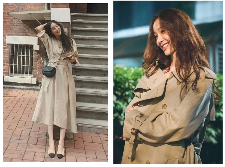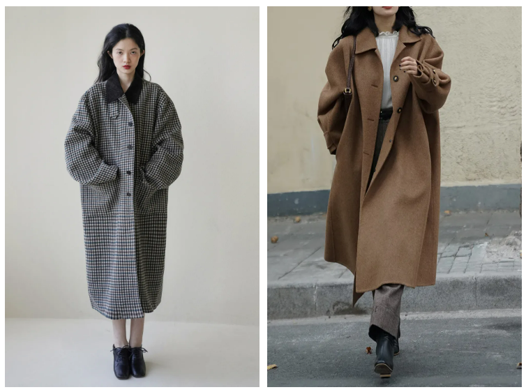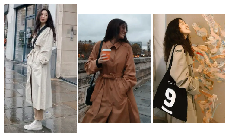 包括她秋天时爱穿的风衣也一样,都是能把肩膀架宽,但又看不清具体肩线在哪里的宽松大袍子。