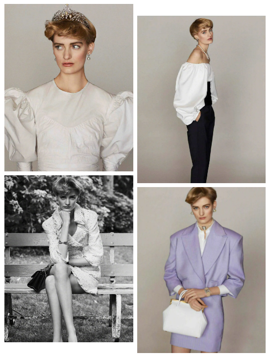 比如上世纪的戴妃。像这组模特大片,你一看就知道是在致敬戴妃,这就是个人风格的魅力。