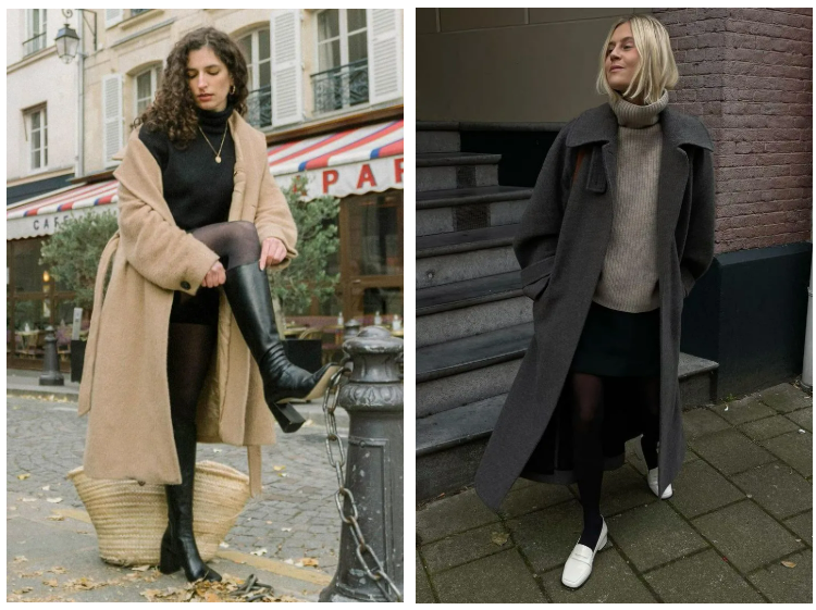 外面就套个能遮住裙摆的长大衣或长羽绒服,是超有女人味,同时又非常保暖的一搭!