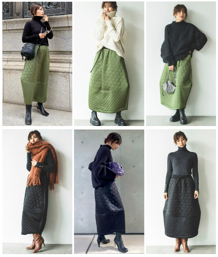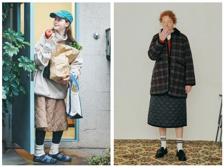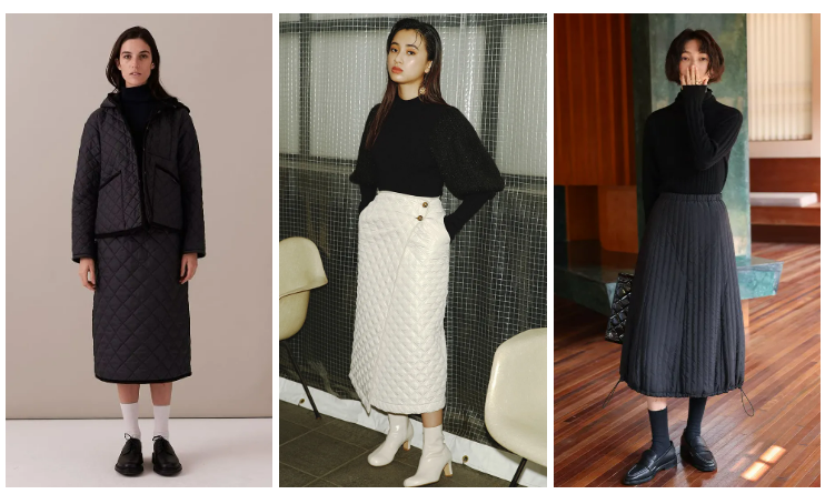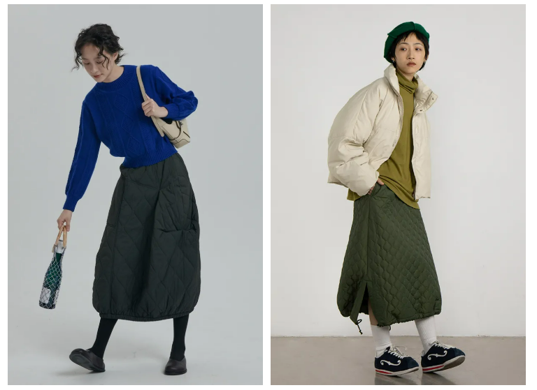 最后一类推荐给大家的是绗棉半裙!没错,今年不光绗棉外套值得拥有,绗棉半裙也很赞!日本女生尤其爱穿,日杂和日本街头中都很常见。