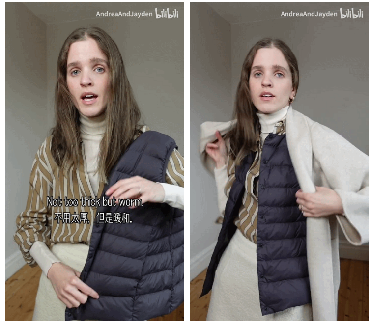 - 在保暖问题上,她告诉我们如果怕冷就准备一件羽绒马甲藏在大衣里,偷偷摸摸的保暖!
