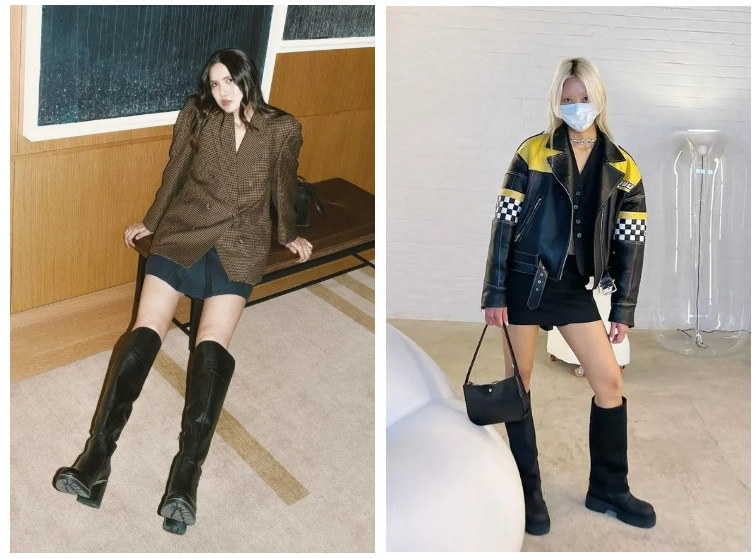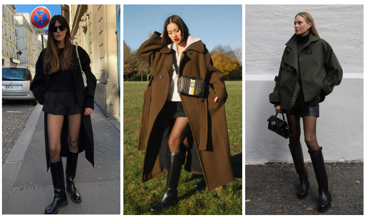 但半高不低的靴筒对小腿要求太高,腿型不好的女生可以换成干练且宽松的骑士靴,这两年都很火。不光修饰腿型,穿上也很帅气,还刚好中和掉短裙的小甜腻。