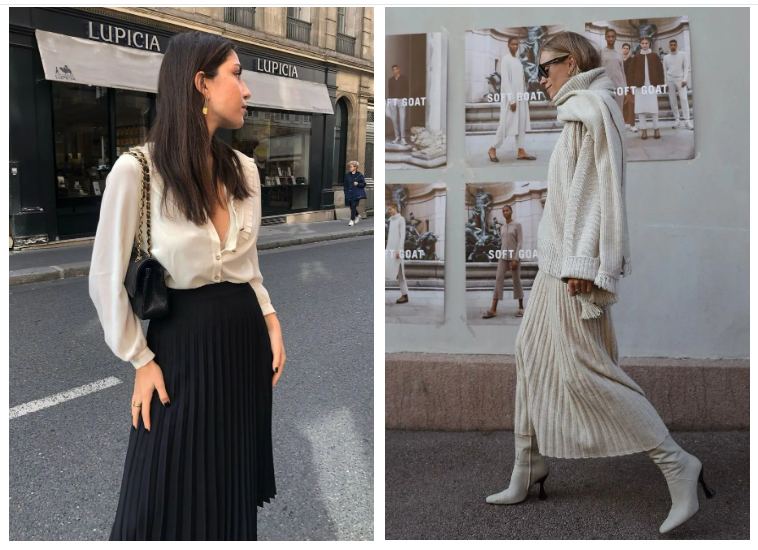 从裙型上看,轻熟姑娘往中长款去选。直筒的干练些,A型的对体型包容性更强,阔摆的最温柔,小腿好看的还可以冲一下鱼尾裙,女人味爆棚。