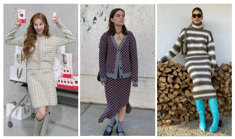关于针织裙呀,我发现今年好多品牌都出了针织套装。