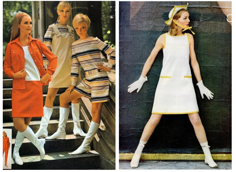 今年好看的短裙思路是搭配靴筒在小腿至膝盖之间的高度。特别复古,是60年代mini