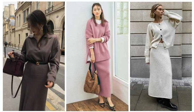 轻熟姐姐们也有的选,针织套裙做成中长款一样好看。而且套裙的上衣裙子拆开来又是单独的个体,买一套顶三套,性价比绝对高啦!