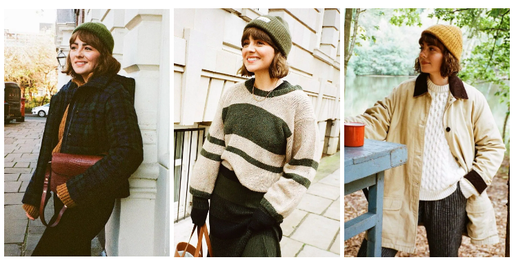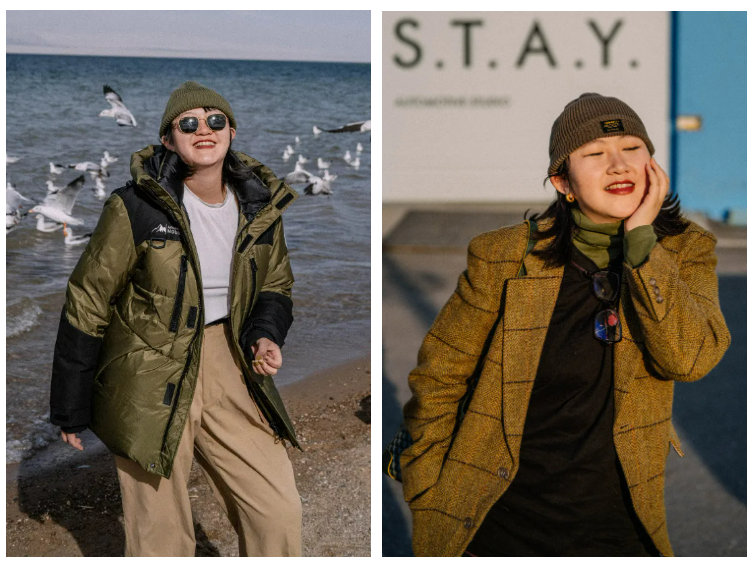 穿这类风格时,冷帽颜色可以扩展扩展,彩色系可以安排上了,但要选择低保和的彩色系才对路。以Alice为例,她常戴的就是橄榄绿和姜黄,复古氛围拉满。