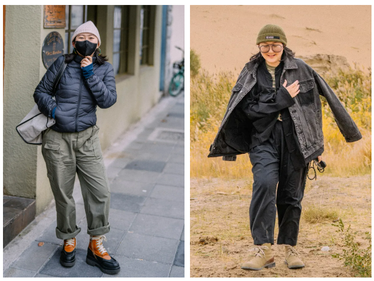 或是看着粗糙,但非常舒适的徒步鞋…这些中性工装风都跟冷帽配一脸。