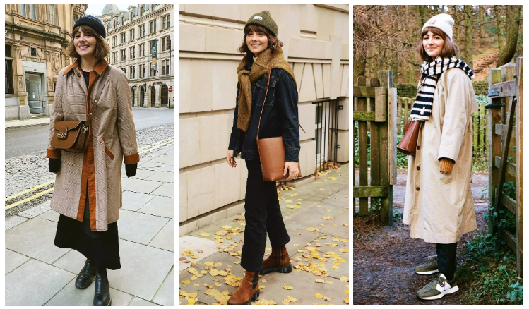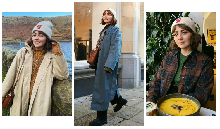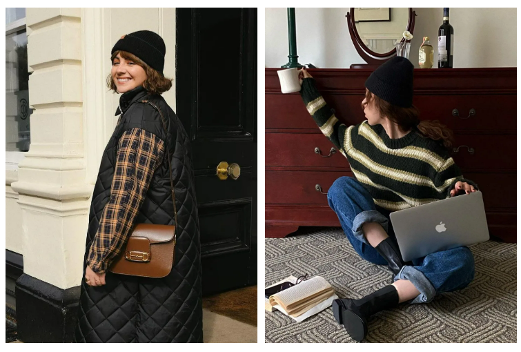 冷帽也可以搭配复古元素。这类风格的代表必须有英国博主Alice Catherine,她经常穿格纹、原牛、棕色之类的复古单品,跟冷帽是绝配。