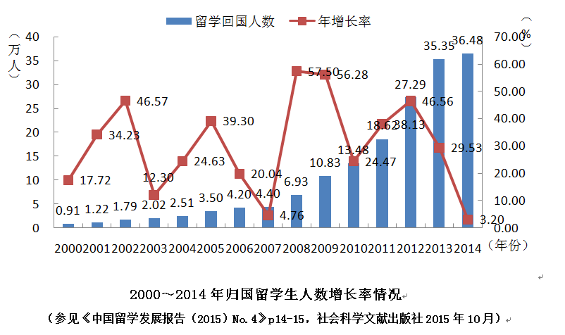 留学2015蓝皮书:中国留学回国人员持续增加且就业质量高