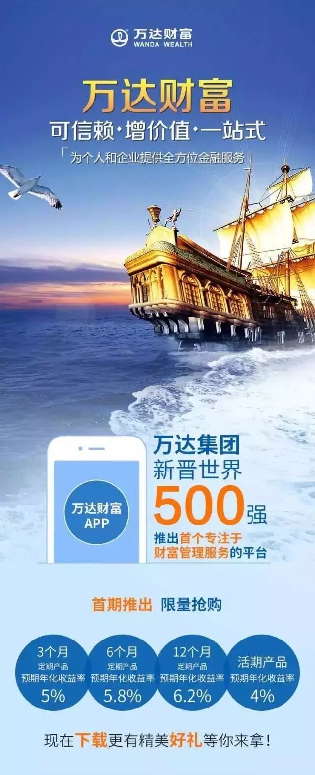 今天,2016飞凡商业博览会暨第十届万达商业年会举办之际,万达集团旗下首个财富管理服务的平台——万达财富APP正式上线,依托万达强大的国际品牌、海量线上线下场景、全金融综合服务能力,为个人和企业客户提供一站式财富管理服务,标志着万达金融板块正式布局财富管理市场。