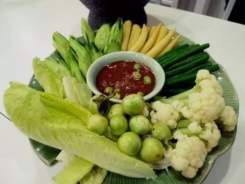 有时处理这些夏季蔬菜,配一个成功的蘸料就够了。在泰国吃过几次蔬菜和蘸料的搭配,因为当地浓郁的香料很多,味道竟然出奇的好。最基本的鲜小米椒、炒熟碾碎的辣椒末和野花椒调配出的辣味,还有一些酸味和咸味的果子,拿来舂碎搅拌均匀,再把烤熟的小番茄剥掉外皮,同样舂碎,再加上香茅草和一些类似罗勒、薄荷的香料,用来给黄瓜做蘸料,因为所有的滋味都来自植物,味道显得淳朴而清新。还有用鱼肉,或者酸笋、花生酱来做蘸料的,可以拿水萝卜、小茄子蘸着吃,也可以用紫苏叶包着吃,一水儿的都是属于夏天的味道。