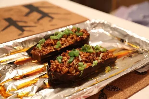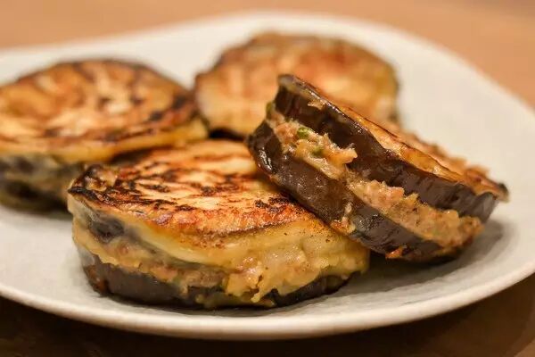 东西方似乎都钟情于烤茄子。夏季的大排档里,一只长茄子劈成两半,重油刷上去,再填上盐和胡椒,吃的时候可以用筷子一条条夹起来,表面焦黑的部分咸而辣,里面烤成灰白色仍带着鲜度,嚼起来能渗出水分,总是在点完肉串时要再加一分烤茄子刷新一下口感的。欧洲人则是把茄子烤好后拿其他鲜味食材来搭配。比如磨碎的洋葱和小番茄,加醋调成酱,放在烤茄子上衬出茄子的甜味,常见的也有用马苏里拉奶酪的,和挖出的茄肉搅拌在一起,随着双方温度的平衡,马苏里拉奶酪变得粘稠,茄子放凉以后更加软糯香甜,卷裹在一起也挺好吃的。