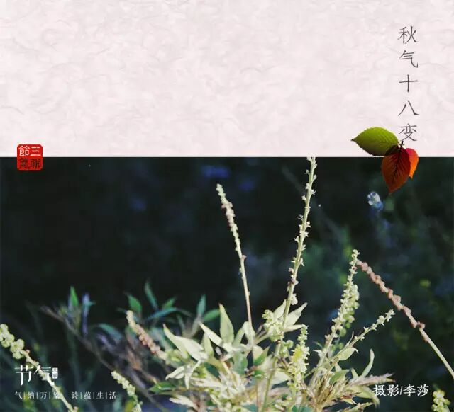 早起秋日悬清光,已经感觉到凉入衣袖的清爽了。秋是六气十八候渐进的过程,秋气十八变,一气换一种景象。立秋后五天才凉风至,再五天,草尖上就会覆滿白露了。秋气为白,故天色会越变越浅,地气会越变越浓,大地因此才成为调色板。天地将肃,就要给神界的亲人们送寒衣了。