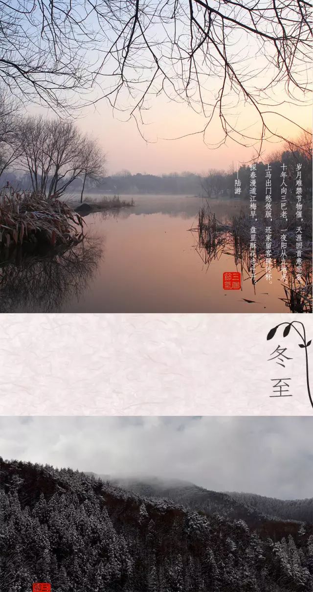 冬至是一个安静之节。这是为顺应阳气刚萌动的天时地理,由此,这一日要关闭城门,关闭市场,停息战事,禁止喧闹,所以,冬至夜视一年中最安静的长夜。