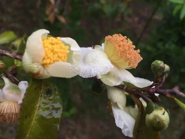 茶花是茶树的有性繁殖器官,由花芽发育而成。根据海拔与产地气温状况茶花逐次开放。不同品种的茶树,茶花的大小与香气各不相同。每年入冬后茶花就会开遍山野,远远看去竟像一片芳香的雪海般。
