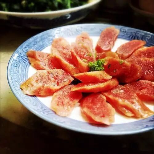 我家的香肠驰名整个亲戚朋友圈子和单位院子,往往只要我家阳台上的香肠一晒出来,亲戚好友,院子里的邻居同事们,甚至单位伙食团的厨师大孃都会争先来“预定“上几节。新年间热闹的走动往来间,我家也少不了收到好些亲友邻居们送来的自家年货,因了我家的香肠手艺,家里春节始终有吃不完的腊肉酱肉火腿板鸭这样各家各色的年味。