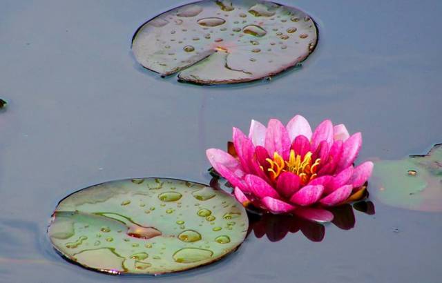 以前,我一度很好奇,为什么从没见过睡莲花凋零的景象,哪怕追看一朵开放的睡莲五六天,也还是没能留意到它是怎么凋零的。后来才知,每一朵怒放的睡莲近旁,都会不断地有骨朵升到水面,悄悄进行新旧更迭;再就是,莲花凋谢后,会有莲蓬,然而睡莲就不会有,因它的果实总在水下生长;至于花色,莲花多是粉白两色,但睡莲的色彩从白到红,从黄到蓝,应有尽有。