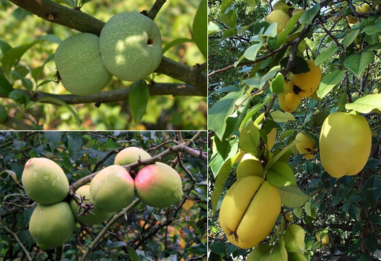 左上为贴梗海棠果实,也称为木瓜、皱皮木瓜;左下为木瓜海棠果实,也称为木桃、毛叶木瓜。右为木瓜果实,也称作木李、光皮木瓜。图片来源:opencage.info,ruhr-uni-bochum.de,br.fgov.be
