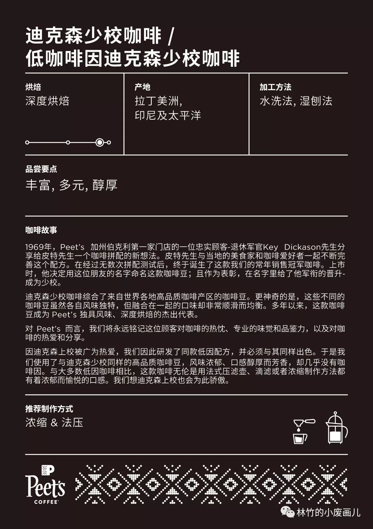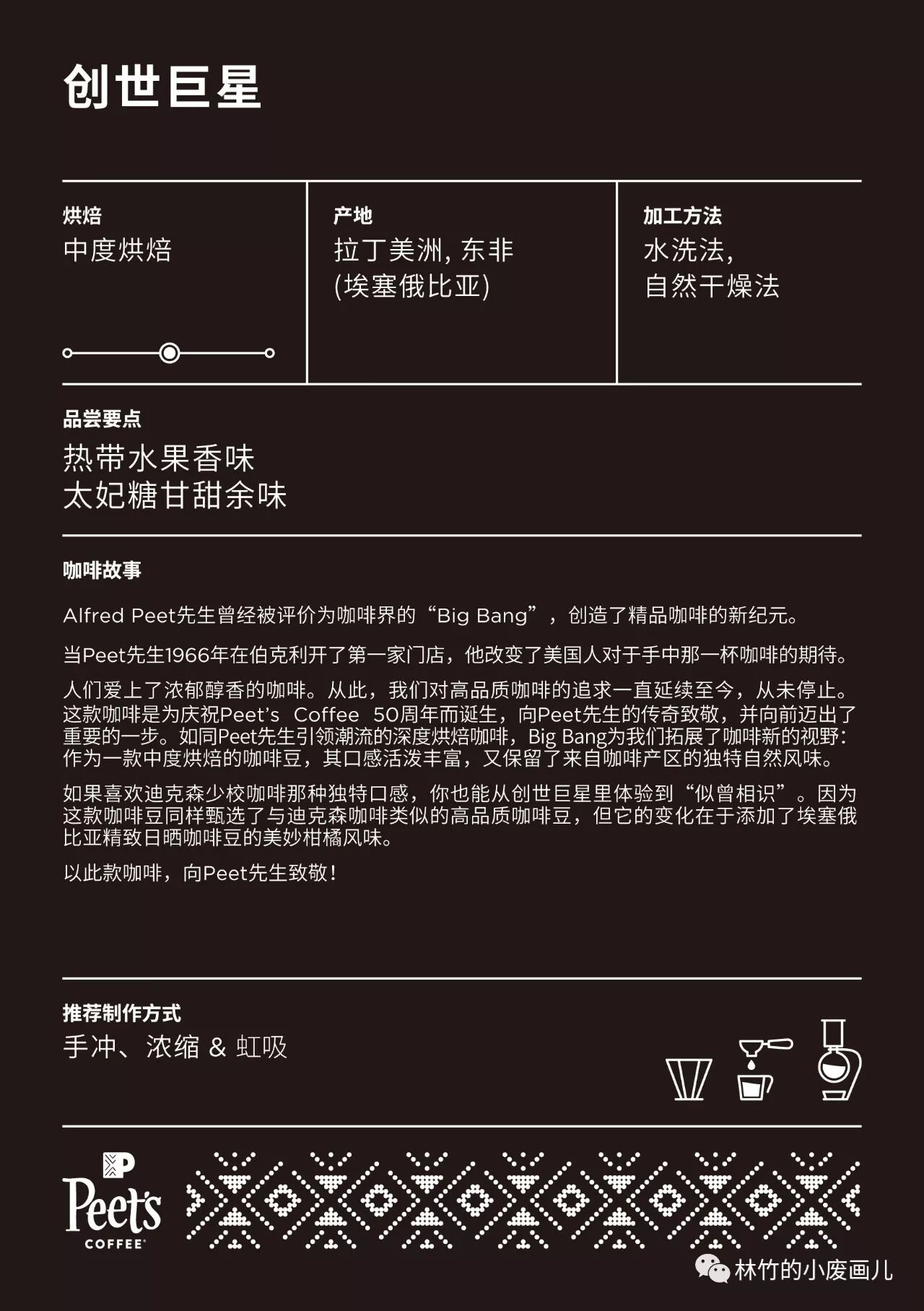 必须夸一下的是,Peet's的介绍并没有艰深晦涩的术语来显得自己与众不同,只用最平实的语言和最少的文字来阐述,不懂咖啡的人看上去也毫无心理压力并且容易懂。
